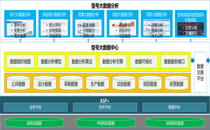 • 神軟工業大數據系統(AVIBD) 針對復雜型號研制和管理數據特點,以數據思維構建型號數據體系,實現型號全生命周期、多業務維度、多應用場景的組織、分析、挖掘和可視化.利用數據智能優化研制業務流程,支撐研制管理和技術決策。系統主要包括主數據管理、工業大數據治理、企業數據資產管理和型號大數據分析應用與共享交換等。